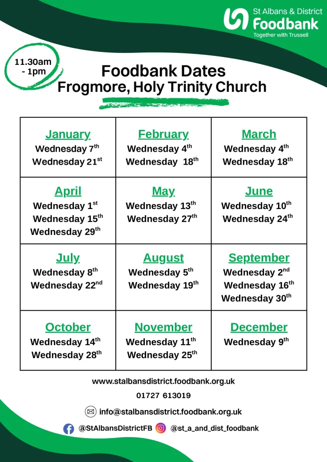 Here are the opening dates for Holy Trinity Church, Frogmore for 2026. Opening times are from 11:30am to 1:00pm.